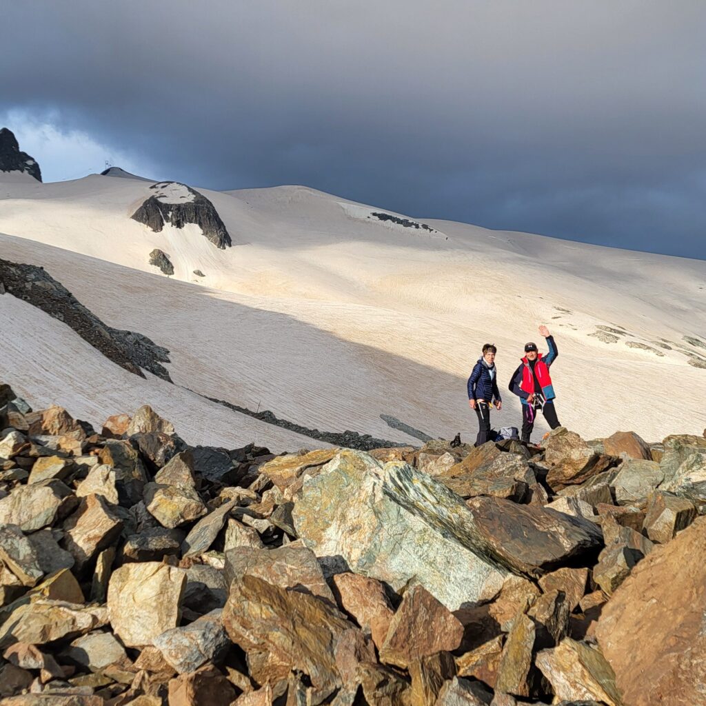 ✅ Course d’initiation idéale : glacier facile, pentes modérées, apprentissage des techniques de cramponnage et de progression encordée.