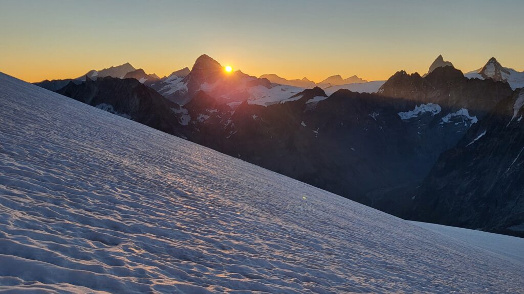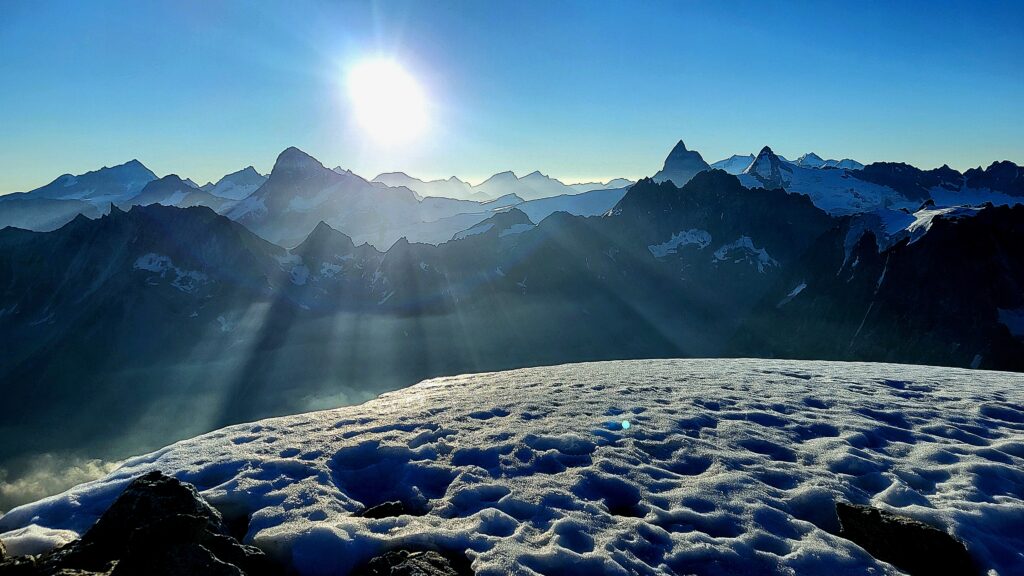 ✅ Panorama exceptionnel : Depuis son sommet à 3 787 mètres, une vue imprenable s’étend sur les Alpes valaisannes, incluant des sommets emblématiques tels que le Cervin et le Mont Collon.