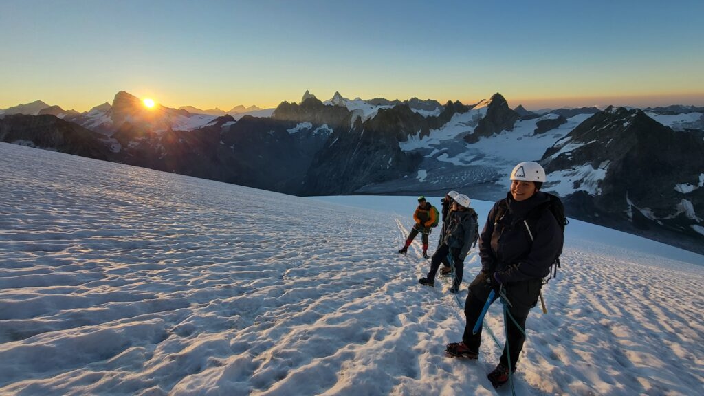 La traversée du Pigne d’Arolla sur trois jours offre une immersion complète dans le cœur des Alpes valaisannes, combinant ascension glaciaire, panoramas époustouflants et expérience en haute montagne. Ce parcours est idéal pour les alpinistes recherchant une aventure enrichissante, avec une option supplémentaire pour les plus sportifs.
