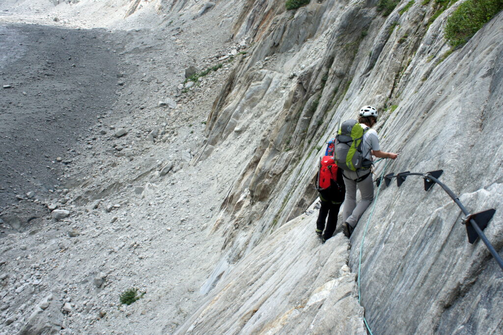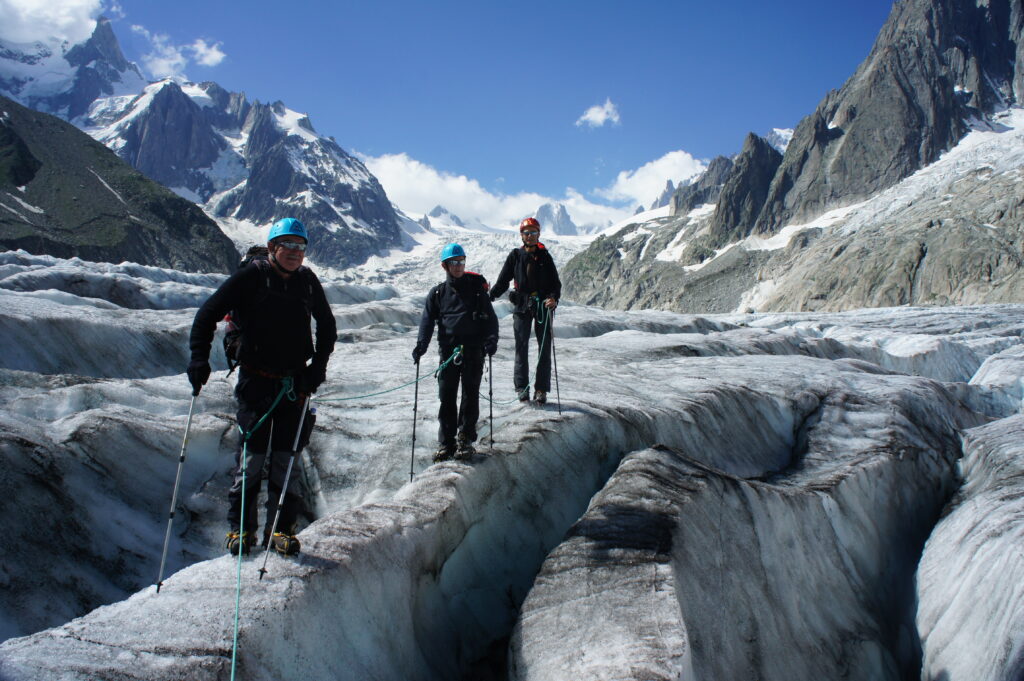Ce glacier relativement doux permet d’apprendre les bases de la progression en crampons et de l’escalade sur glace, tout en admirant le décor grandiose des aiguilles de Chamonix qui dominent l’horizon.