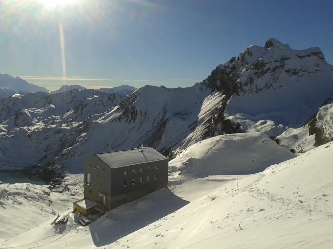 La Cabane de Fenestral est un refuge d’altitude exceptionnel, niché à 2 453 m dans le Valais suisse, au cœur d’une montagne sauvage et spectaculaire. À l’écart des itinéraires classiques, elle offre une expérience de ski de randonnée en raid de 2 jours, où la montagne devient décor, terrain d’aventure et école de pratique technique. Accessible depuis Ovronnaz ou la station d’Ovronnaz, le séjour combine ascensions esthétiques, descentes en neige variée et nuits en refuge dans une ambiance unique, avec une vue imprenable sur le massif du Mont Blanc et le lac supérieur de Fully.